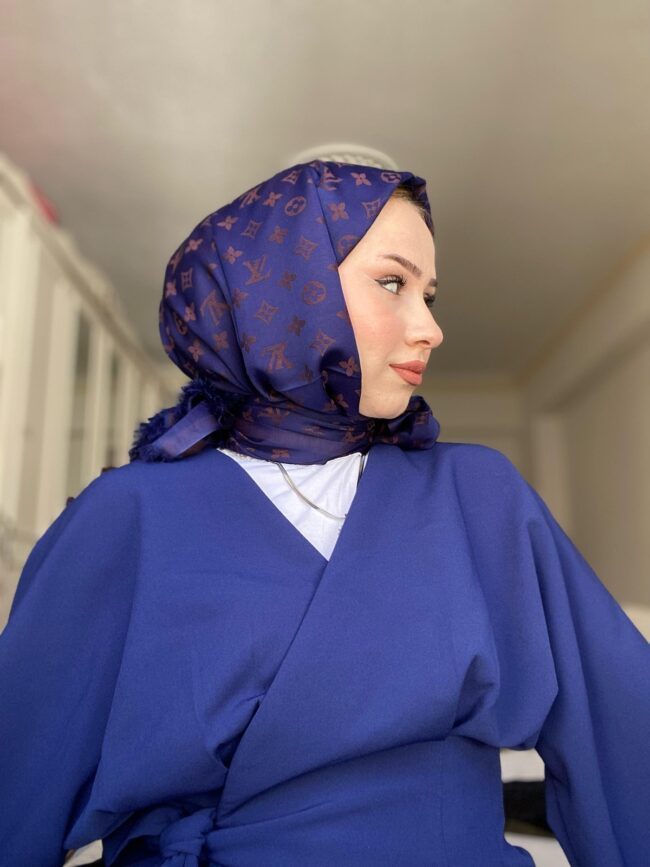 Lv Desenli İpek Kaşmir Çift Taraflı Şal – Bakır- Lacivert