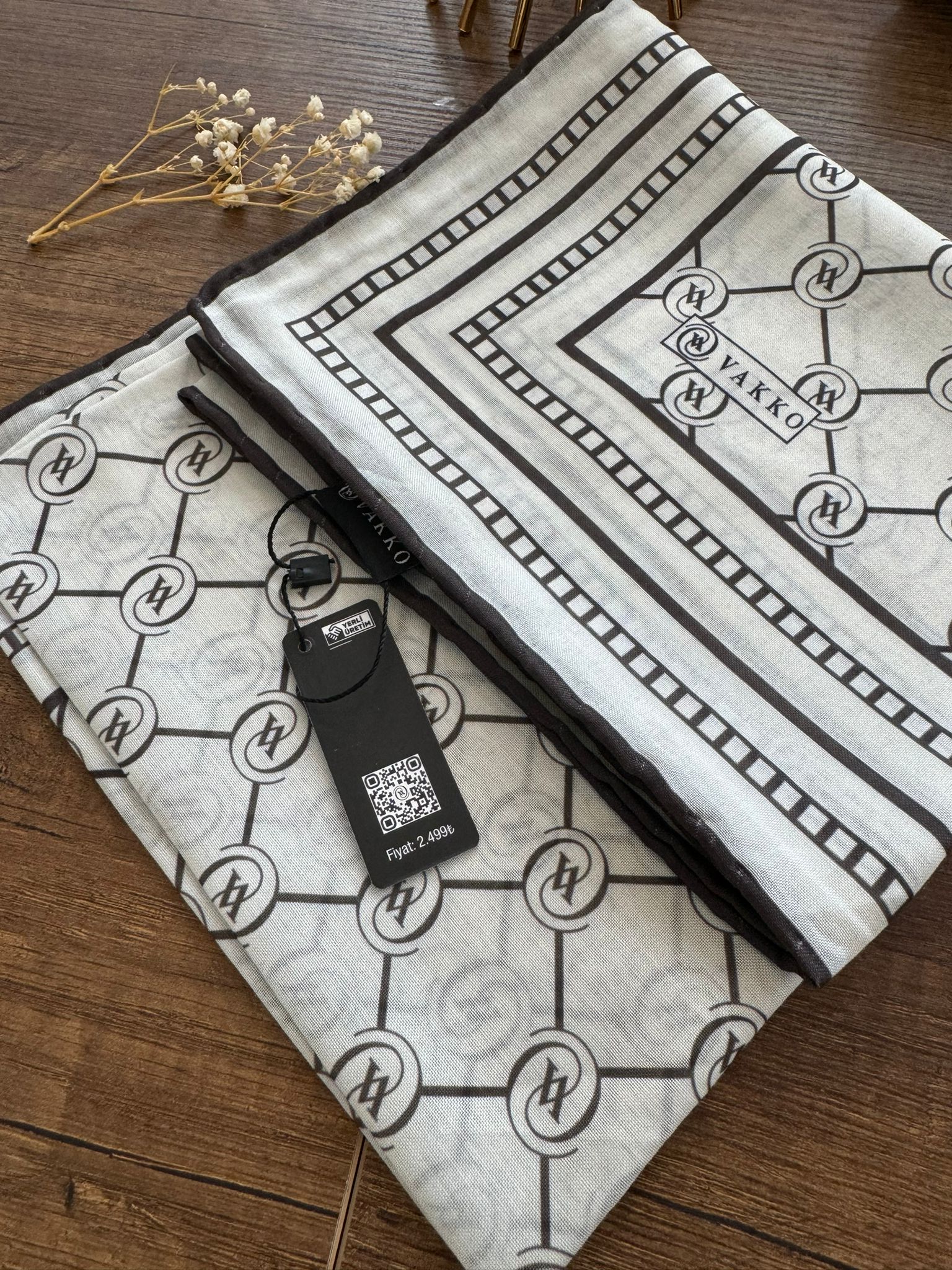Vakko Monogram Desen Pamuk Soft Eşarp 21510 – Ekru