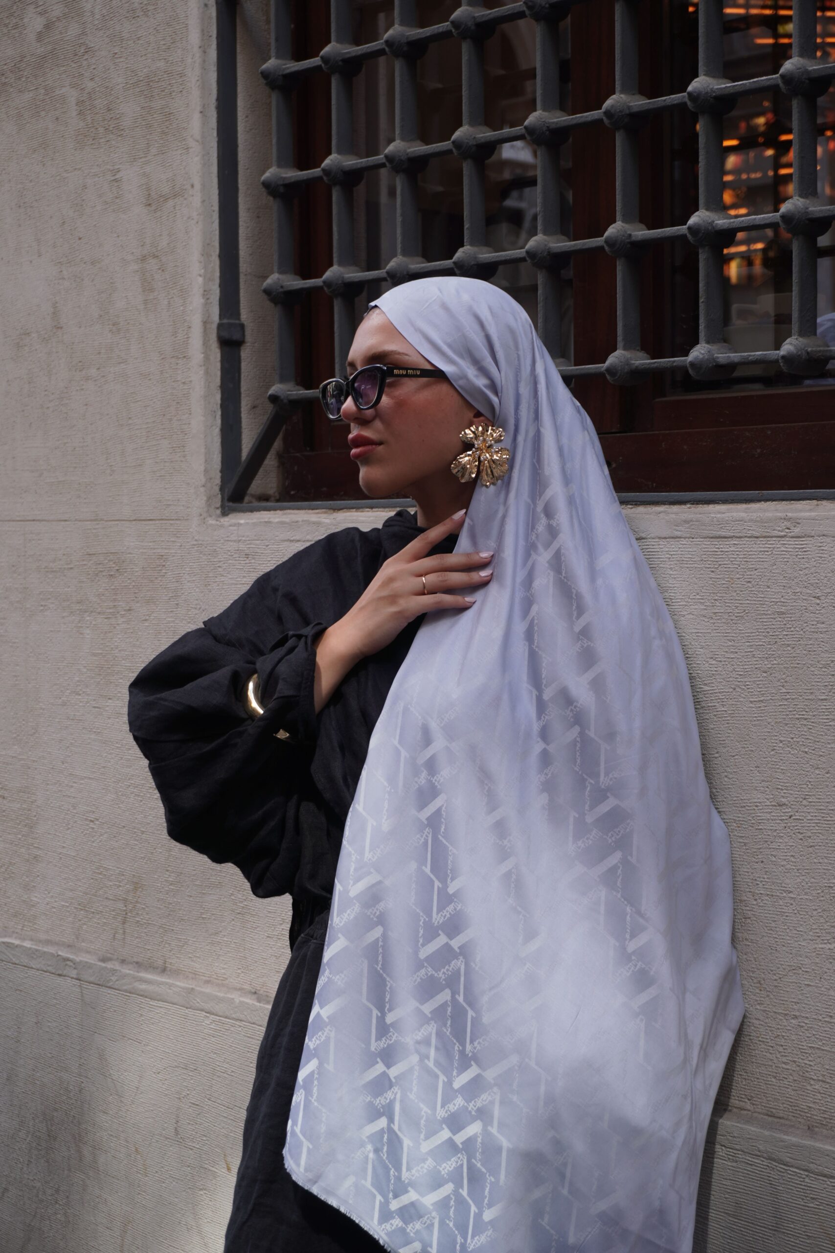 G Desenli İpek Kaşmir Çift Taraflı Şal 440344- Gümüş Gri