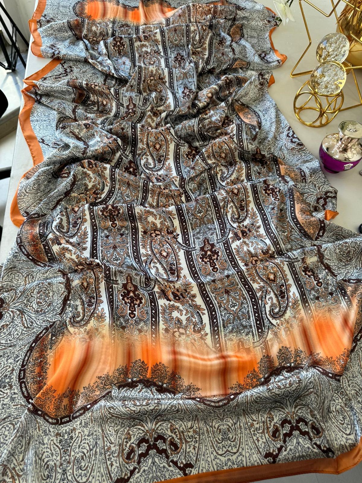 Etro Marka Yeni Sezon İthal Etnik Desen Vual İpek Şal - Oranj