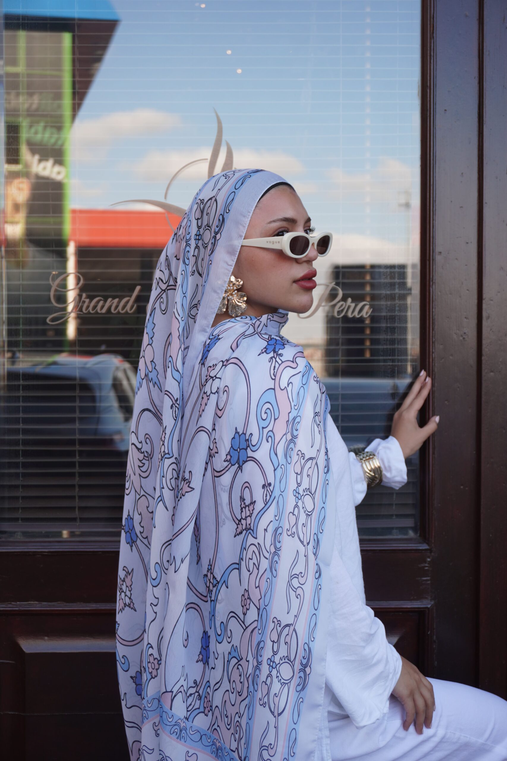 Mystic Bloom Desen Pamuk İpek Şal-Pudra