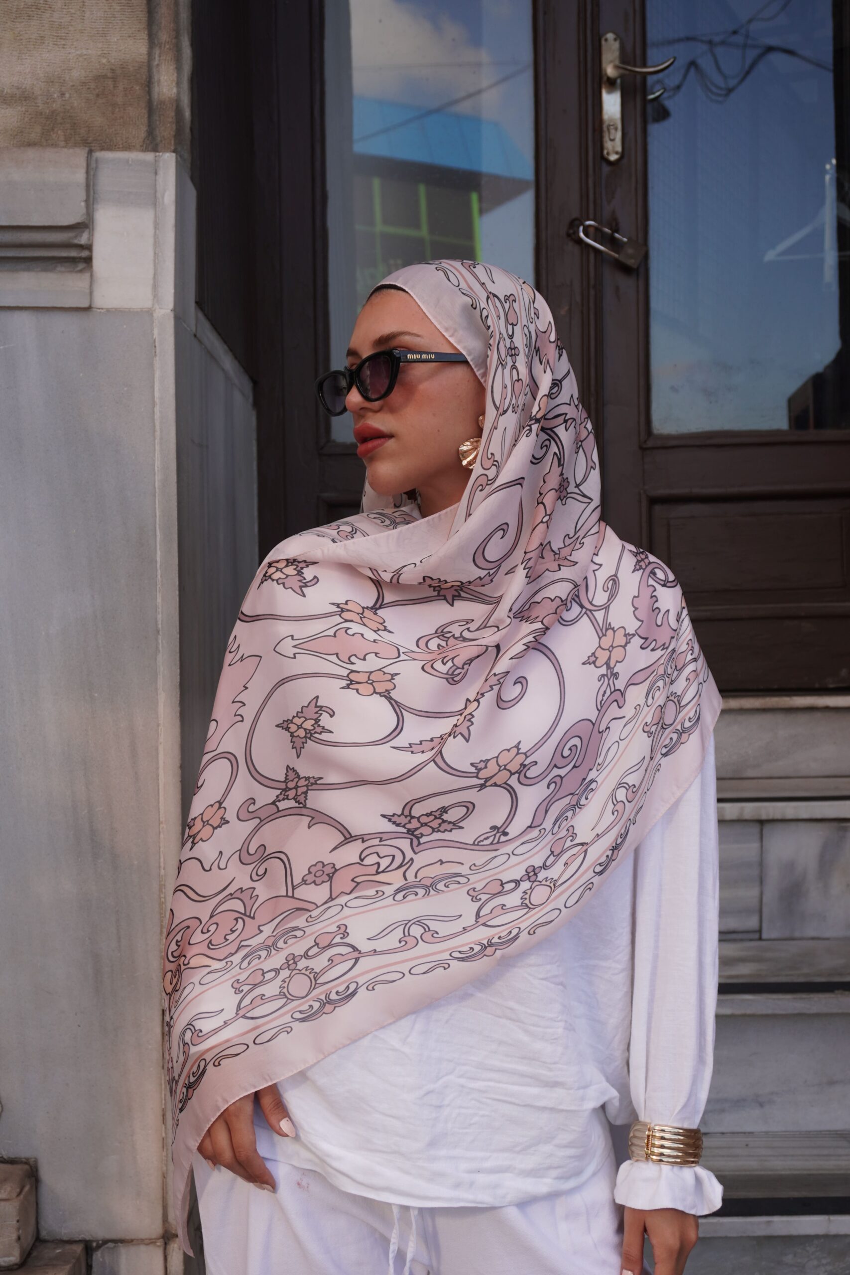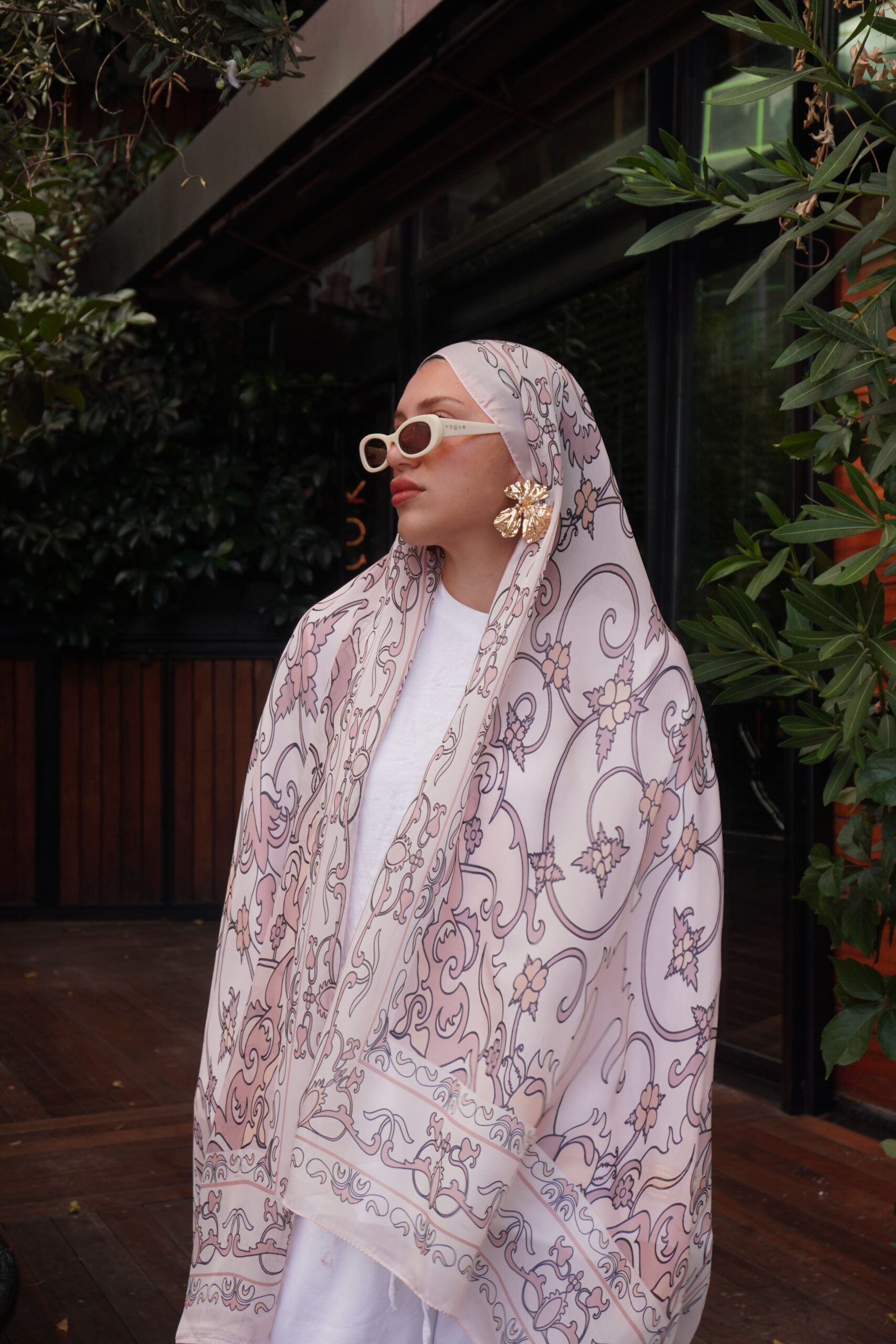 Mystic Bloom Desen Pamuk İpek Şal-Pastel
