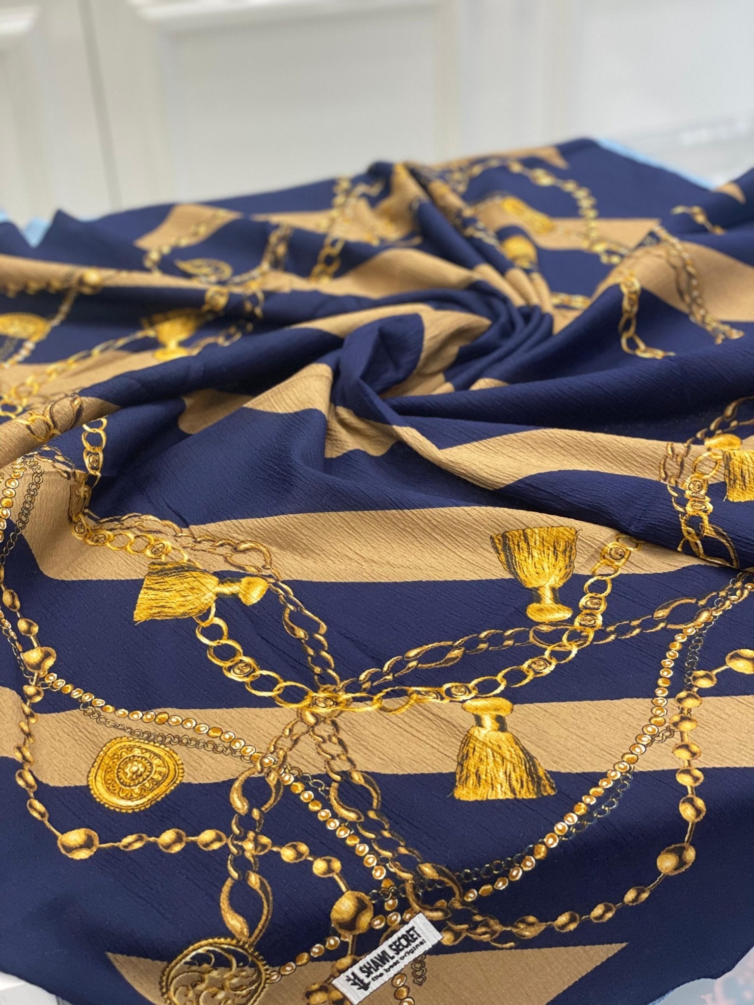 Zincirli Desen Mio Cazz Eşarp – Lacivert- Camel